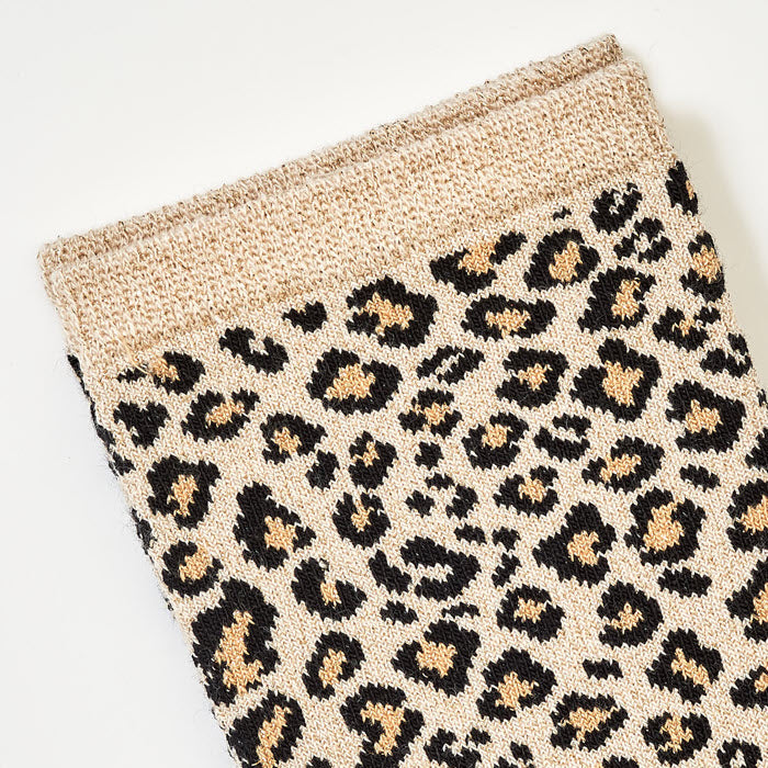 Socken mit Leopardenmuster für einen katzenartigen Look. Ein Klassiker, den man überallhin mitnehmen kann. Sie fühlen sich weich an und sind schön anzusehen.