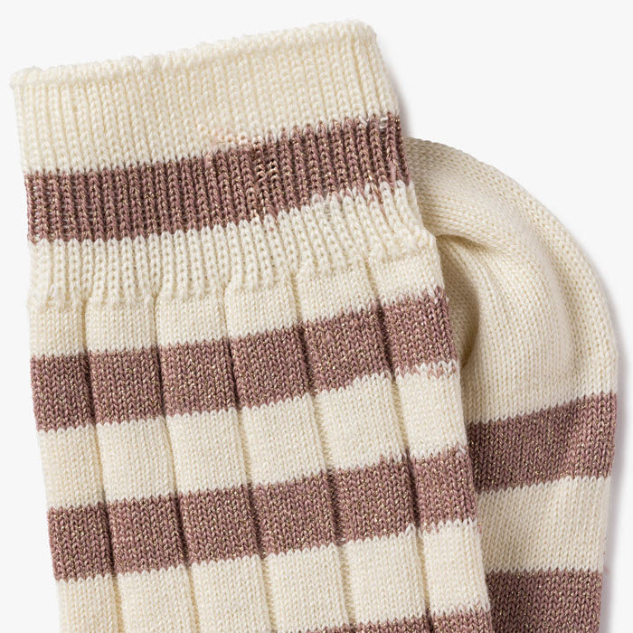 Diese Socken sind für alle, die Vintage und Komfort lieben. Inspiriert von der Kleidung von Cricketspielern, sind sie neu aufgelegt und femininer gestaltet worden. Es handelt sich um dicke, breit gerippte Socken.