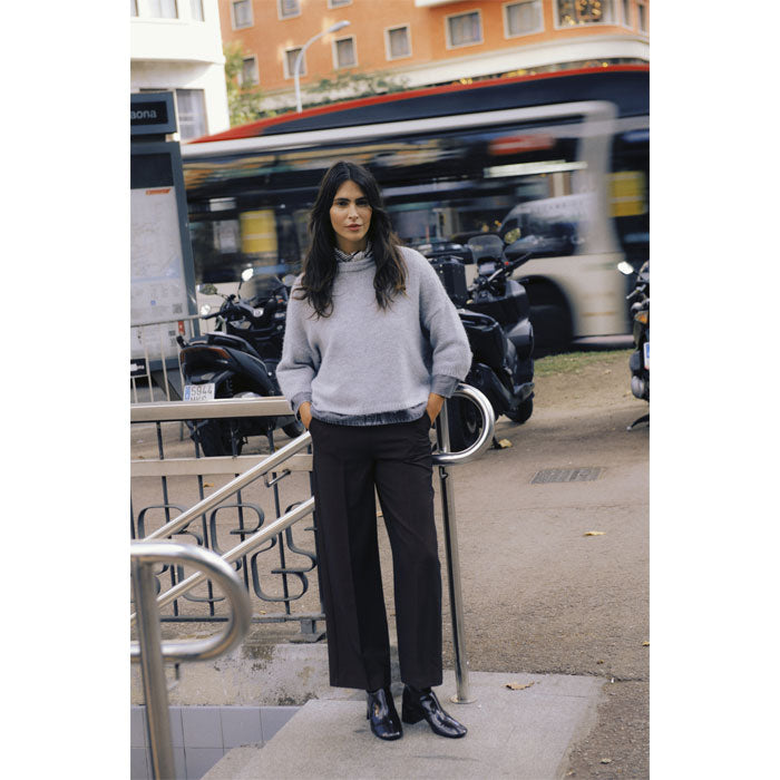 Der Pulli hat 3/4-Ärmel und ist eher weit geschnitten.